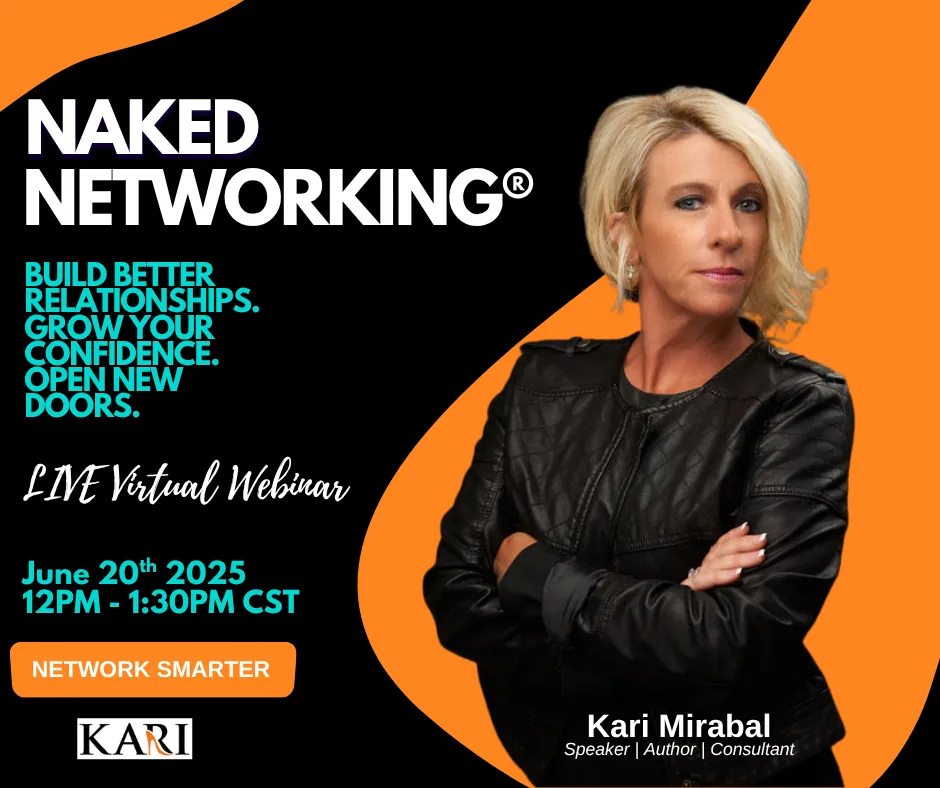 Join Kari for a live, virtual webinar packed with powerful networking strategies and solutions to elevate your professional skills. Get real, transparent answers to your toughest questions.